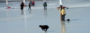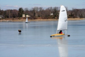 I went back today and saw some of the beautiful large iceboats. Many of the older ones are made of wood and are passed down in families. I’m just too lazy this eveining to download those pics from the camera. The ice at shore was getting soft by late this afternoon, but that didn’t stop some fools with baby carriages (can you imagine!) from going for a stroll on the ice.