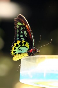 The light was harsh for photographs and it seemed like the prettiest butterflies never stayed still for a photo, but this guy finally settled in. I think he’s called a Cairn’s Birdwing and is from Australia – the topside of his wings is the most striking shade of neon green – I found a pic here to give you an idea, since it was impossible for me to get a pic while he was fluttering about.