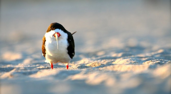 When I was a beginner, I couldn’t tell a tern from a gull, never mind which tern or what gull. What changed that for me was not having field guides thrust in my face over and over by helpful birders. It was the most patient teacher of all: time. Summer after summer spent at the beach and endless hours “wasted” enjoying terns just going about their lives at the ocean’s edge taught me how to distinguish them from the other birds that make the shore their home. Summers spent watching over Least Tern colonies taught me to distinguish them from the others of their kind. Nowadays, I can know a Least Tern from a Common simply by the level of its shrieking and the speed of its shadow as it passes overhead. Knowing Leasts this well makes the others easy, because it provides a starting point from which to distinguish them from the others. But ask me what color a Least’s legs are and you’ll draw a blank stare in reply.