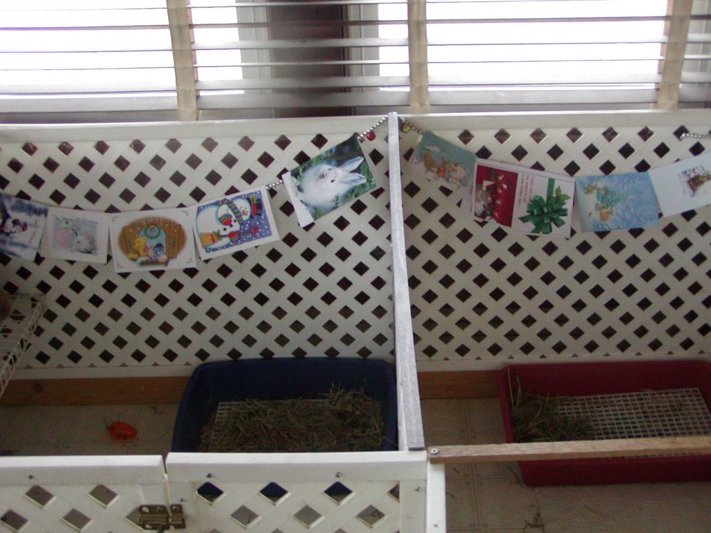 This next photo is of the cards in Boomer and Cricket’s pen. Please ignore the bunnies gorging themselves at the bottom of the pic – I had just giving them their pellets before I took the photo.