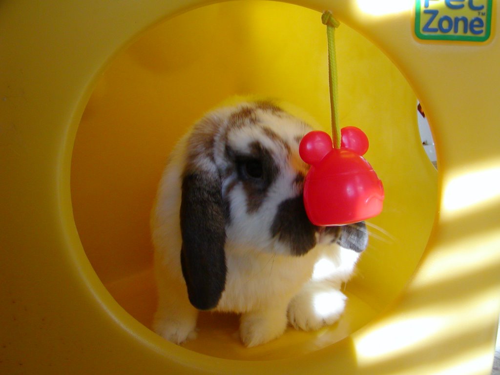 This is a photo of some of the cards displayed on Dora’s cage. Because they’re hung on the very top outside of her cage, she can’t nibble on them the way the other bunnies do. My favorite of the ones you can see here is the second from the left sent by Mary, G.T., Herman and Freckles. It was made by the Minnesota Companion Rabbit Society and shows a bunny meeting its reflection in a Xmas ball. Very cute! Kathy B. made a beautiful handmade card that you can’t see because it’s hanging on the other side of the cage – I can only imagine the time she spends making these. Just gorgeous!