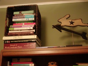 Anyway, back to my trip to B&N. The selection of calendars was lousy, probably because they were 50% off, so I decided to pick up a few of the books that were on my Xmas wishlist that Santa didn’t deliver. Mind you, I already have the pile you see above *to be read* so I really needn’t buy any more books until I get through these, but I just couldn’t resist. The plan is to limit the TBR pile to what will fit in that basket 😉