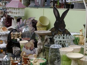 A visit to the local garden center always cheers me. Especially at this time of year when all of the cute bunny items seem to be everywhere. For the most part I restrain myself from buying any of it. This display of planters, birdhouses, and Easter nick-nacks was just so cheerful and fun. I love the giant Peter Rabbit peeking out from the back!