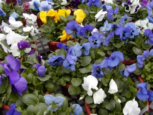 The color in the greenhouses is so breathtaking on such a gray early-spring day that I wanted to bring it all home with me, but I behaved myself and only bought a few pots of purple pansies for the front steps and the little yellow orchid. And two bunches of delicious pink muscatel grapes and my favorite red pears. Yum! How many months till strawberries come in?