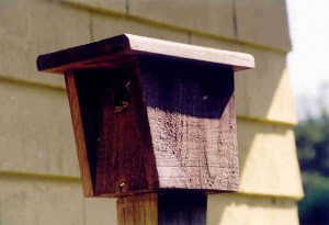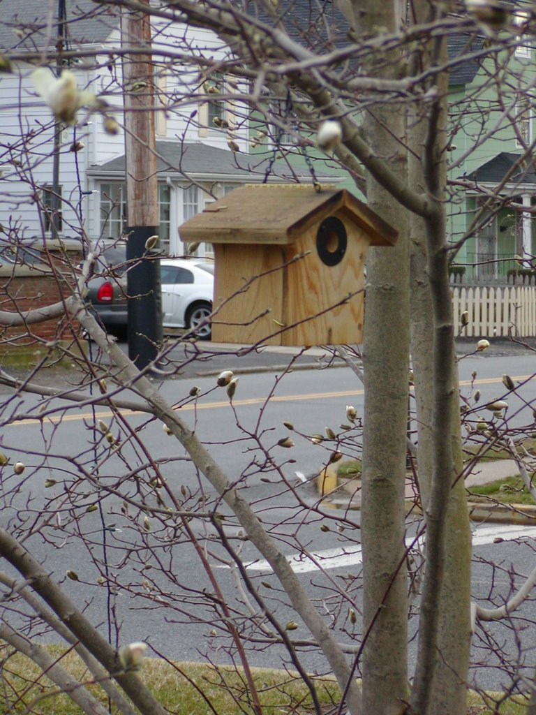 ont of the house. Not sure if I’ll get anyone there, but it’s worth trying, I suppose. I was tempted to buy a house with a larger hole for carolina wrens, but was afraid that would only encourage the house sparrows to nest. A few times I’ve had chickadees (think that’s them peeping out of the box at right).