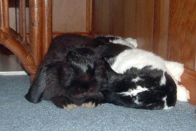 panion of one of Michelle’s other bunnies, Chopper, seen here flopped on his side in a moment of bunny-bliss beside Tink. I have read that French Lops are very affectionate and playful rabbits. Much like a Flemmie, it seems that Frenchies are a breed that people fall in love with once they’ve had the company of one. At least I know that’s the case with Michelle. Thank you, Michelle, for letting me post some of your photos here!
