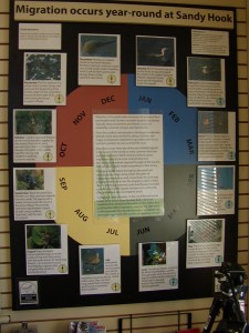 The porch at SHBO has a beautiful view of Sandy Hook Bay – I love to sit out there on summer afternoons and watch the sailboats. In the winter, sometimes a loon or long-tailed duck will float by. Sandy Hook is a barrier beach that juts out into New York Harbor and acts like a funnel for migratory birds in the Spring. The month of March means the return of Piping Plover and Osprey, Harbor Seals gathering on sandbars in the bay, and the beginning of the spring hawk migration. Today, during the first week of March, I had to settle for a few newly returned red-winged blackbirds at the feeders, but I know that by the time I return a month from now, things will be different.