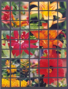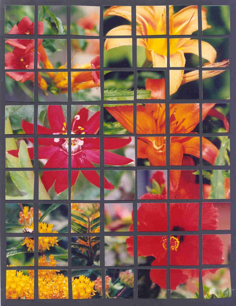 Red/orange/yellow are my least favorite colors in the garden, especially in combination, but I enjoy the summery feeling I get from looking at this scrapbook collage I did a few years ago. There is the trumpet vine we planted for the hummingbirds that has since overtaken the shed we planted it next to. I don’t often see the hummingbirds using it, and don’t really like the plants’ habit, but it does a nice job of camouflaging the shed that is in need of a paint job. Below the trumpet vine is a gorgeous red passion flower. Beneath that is the tropical butterfly weed that had run wild for a few years, but has since vanished from the garden. On the top right is one of the ubiquitous tiger lilies and an orange garden lily; if I remember right the original few were a *gift* from my brother when he was overrun with them. Finally, a favorite, a red chinese hibiscus.
