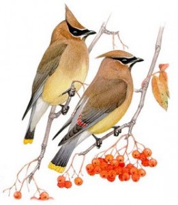 Small flocks of cedar waxwings accompanied the dog and I on our evening walk today. They were congregating in the black locust trees in the neighborhood, attracted by the many insects, I guess. I’ve also noticed that hummingbirds seem to have a fondness for locust trees, at least the ones in the grove at Sandy Hook’s North Pond.