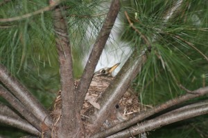 9. I looked in the chickadee box expecting the babies to have fledged. Instead, I found at least five sleeping babies, all in a huddle. Very sweet!
