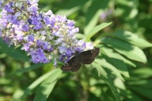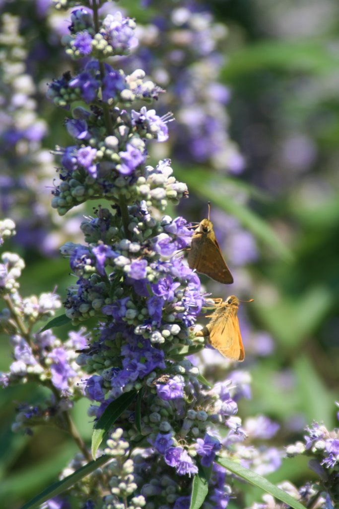 I had to call and ask the staff about the shrub in the above photo. From far away it looked like a humungous butterfly bush, but I knew better. The shape of the flowers was similar to a butterfly bush also, but they were formed more like those of a lilac. I got my answer today – it’s a Chaste Tree (Vitex agnus-castus) – a non-native, but from what I’ve read seems to be popular in the south and in arid regions of the country. I’d be interested to hear more about it from anyone that is familiar with it. The flowers were covered with bees and small butterflies, I walked round and round a few times to get a look at all the insects that were feeding on it.