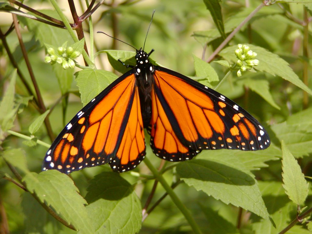 Eventually it climbed to the top of a snakeroot flower, a few inches above where it had spent the last 17 days pupating, and spread its wings to the warming sun. I could see then that it was a male based on the two *dots* in the black veins of the hindwings. The russet and black wings are gorgeous and fresh. Breathtaking! He flew to the top of my neighbor’s garage and rested, then flew to the mulberry tree and rested again; warming and strengthening his wings.