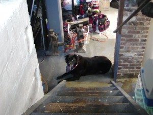 You’d think he’d remember this and not go down there. But the urge to follow my husband and be in the middle of everything is still strong in him. He’ll whine and pace. He’ll try taking a running start at it, but gets only as far as his front feet on the first step before he chickens out. We spent nearly an hour coaxing him once before my husband had to carry him up. Poor embarrassed Buddy!