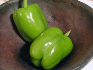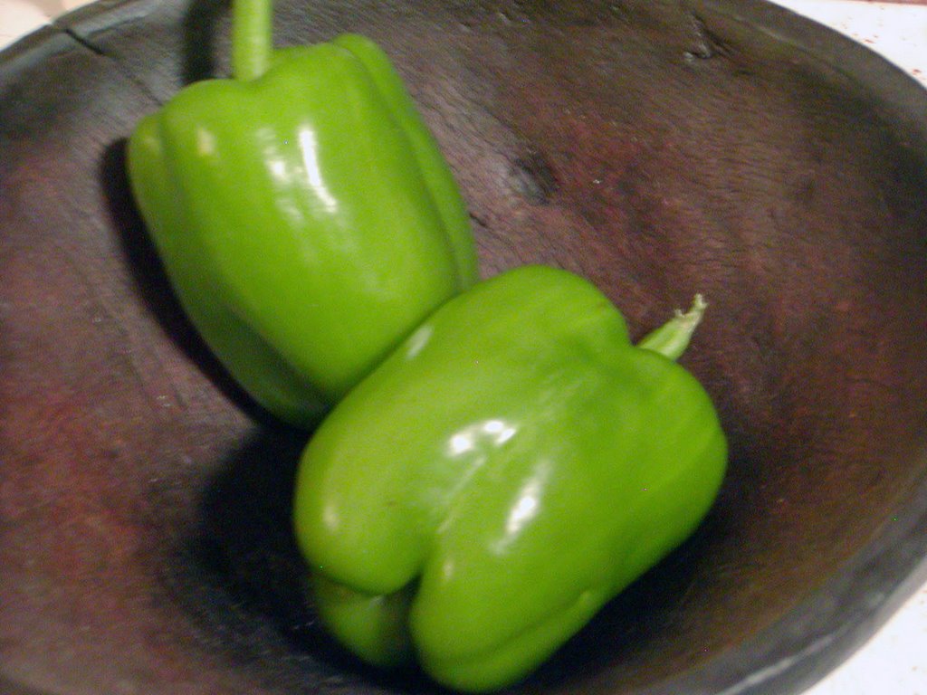 Two of them – oh boy! What a joke. The six pepper plants kept dropping their blossoms – what is that about? Too much rain? These two nicely-sized peppers have been mocking me since Saturday when I picked them and tonight I’m going to make one of my favorites – stuffed peppers. My dad made the best stuffed peppers, but was always very vague about his recipe, like all good cooks are. I’ll share my recipe, but must warn you that I’m no cook.