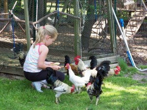 This is a pic of my niece feeding her chickens. The chickens are my fault.