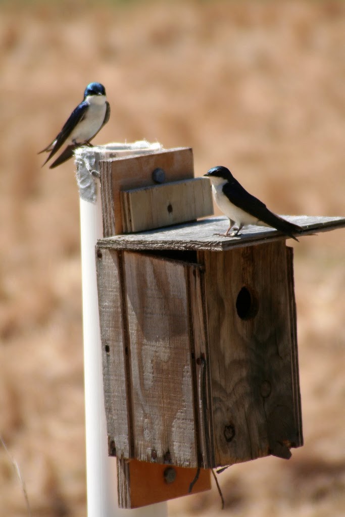 I found these tree swallows at lunchtime today. They were very involved in discussing the merits of this particular nest box, as compared to any of the others nearby, and didn’t mind that I got close to take a few pics.
