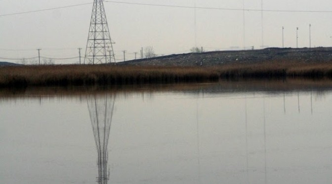 When not picking dandelions, I’m gossiping with toads – Fowler’s, I think. They’re very talkative just now.I went on a *special excursion* today with NJ Audubon to the NJ Meadowlands. I don’t know how far the reputation of this area travels outside of NJ, but it’s not a pretty place. All those awful things people like to say about NJ are because of the Meadowlands. If you’ve ever flown into NJ via the Newark Airport and traveled on the Turnpike you know what I’m talking about. A mess of chemical plants and trucking companies, factories and warehouses, and garbage dumps. Lots and lots of garbage dumps. All of this in the middle of a marsh and meadows.