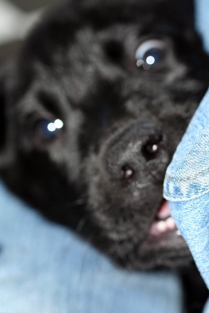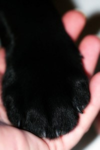 He’s as mouthy as you’d expect from a Lab pup, but we’re working on that. He tends to go for my husband’s toes, yet he favors the backs of my ankles, or worse, the meaty part of my calves. Youch – he’s all teeth! And baleful looks when corrected.