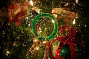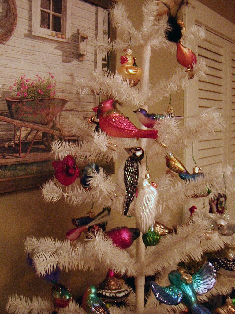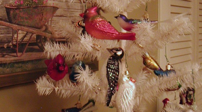 I want to share two last things before wandering away for a few days: first a final example of quirkiness found at my brother’s. Do any of you remember those old-fashioned tinsel trees? Well, Brian bought this one and has it decorated with bubble lights and antique Shiny-Bright ornaments he’s bought off eBay or pilfered from my dad’s garage and we all think it’s the most beautiful thing.