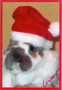 I never got around to signing the bunnies up for their usual xmas card exchange and we’re all really missing the fifty or so cards that come each year. Loads of bunny cuteness in the mail every day – imagine! – but we did get this one card today by mistake, sent by someone who forgot to remove our names from last year’s list.