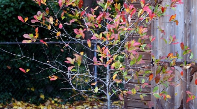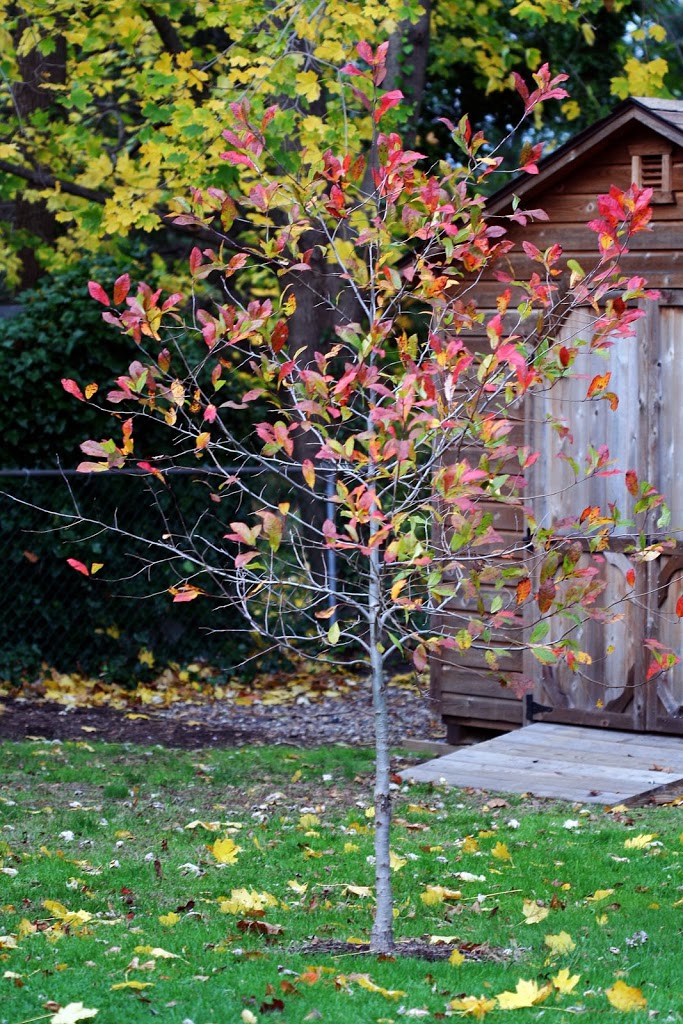 This little tree has only been here for a little over a year now and it doesn’t seem to have grown at all, but that’s the way with trees. I think we pay them lots of attention when they’re first planted and then forget them. All at once they’re taller than us and thick-trunked and a proper tree.