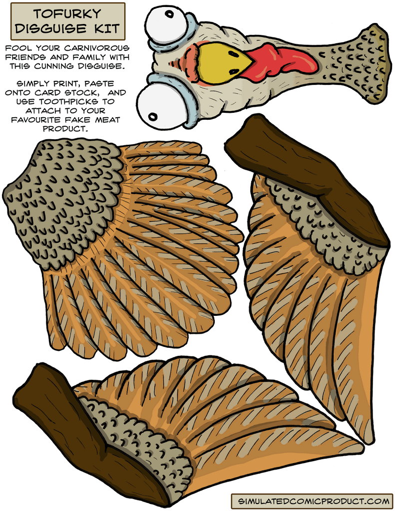 I did a little searching of my own tonight and came up with this site that has complete instructions for how to disguise a meatless product for your Turkey Day dinner.