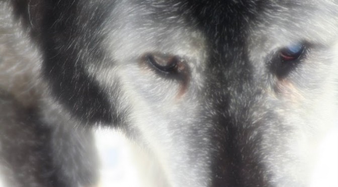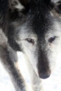 At sixteen or so, this one was among the oldest of the wolves at the Lakota Preserve and had been ousted from his position as Alpha in another pack. The fight very nearly killed him, or would have, had it not been for his caretakers who’d had his throat sewn back together and his blinded eye tended to. He was relocated to a different pen with another, gentler, pack where he’s been accepted in his new submissive role.
