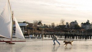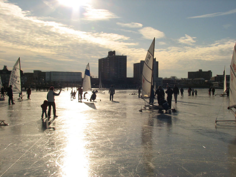 A couple iceboats on the river late this afternoon evicted the gulls from their usual loafing spots on the ice. Click on the pic to see how handsome he is – even for a sleepy gull.