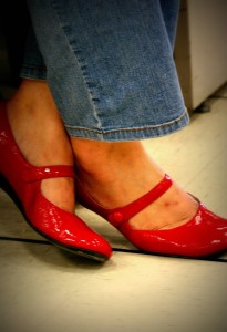with his red feathers