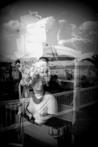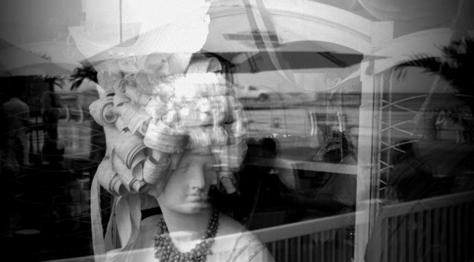 My favorite shop for reflection pics is the Bodega Shoppe at the southernmost end of the boardwalk. There’s always something interesting on display in the window there… lately there’s this crazy looking bust with a curly wig that ends in a sailboat… fun! Reflected in the window are the happy people dining at Stella Marina (which has really nice homemade pasta, btw.)