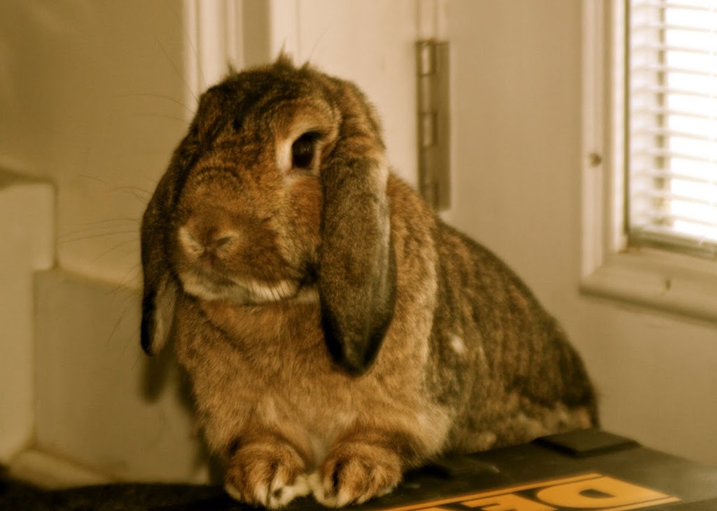 We went on this way for a bit… me threatening her with my approaching steps and her retreating behind her cage, just out of reach, with a bit of glossy book jacket as her prize. I’d sit and forget about her until she did it once more. Then I’d be up after her again. Up and down. Back and forth. She had that cheeky look bunnies get when they know they’re being bad, and that saucy little way of turning her back to me.