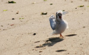 A particular joy at this time of the season, late July, when young terns and young osprey at Sandy Hook are learning to fish and to make their way in the world is to place myself among them on the bay near to sunset: behind every shell or pebble or bit of sea-drift is the possibility of a young bird waiting for its next meal delivery; a feathered army of birds marching ahead of me until finally I settle myself amongst them, drenched and soggy in the tide, sand-covered and happy.