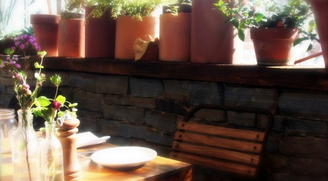 Julie is in town to speak at Longwood Gardens. Heather was our local guide and she picked the perfect spot for lunch – sun soaked and fragrant with the scent of growing things… a place to nourish winter-weary bodies and hearten a growing friendship.