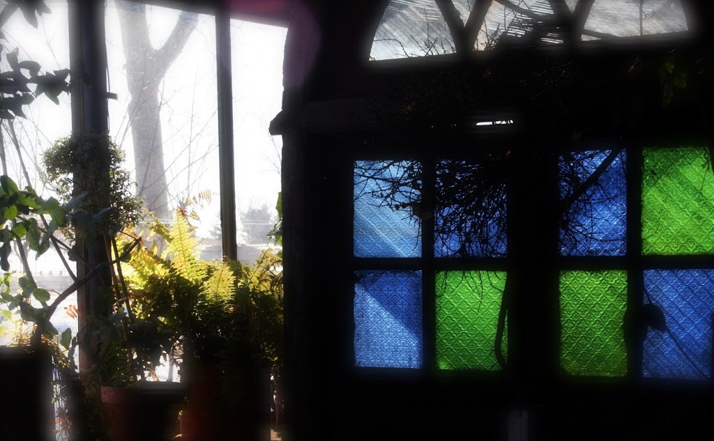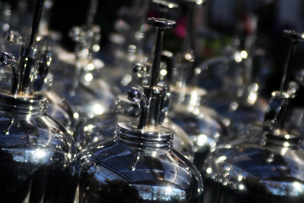 Wandering around with my camera I found lots of things, like the winter sky reflected in silver plant misters.