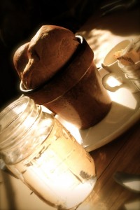 This is the photo I took at the beginning of our visit – a simple bread baked in a clay pot, a mason jar of ice water and the late winter sun streaming across the table where we gathered for lunch.