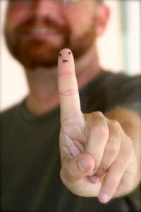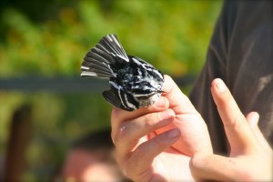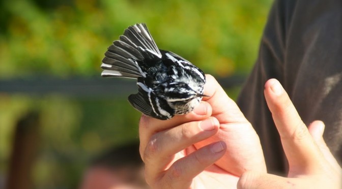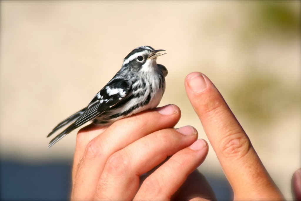 Note the “target” penned on the bander’s finger… he says it gives the birds somewhere to aim their bites!