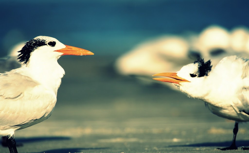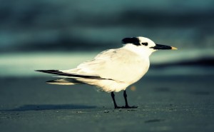 I sneak close on my belly, camera in hand, for a better look at the spot of mustard on a Sandwich Tern’s bill…