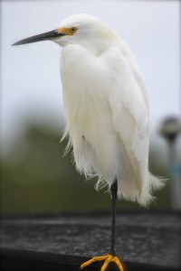 Snowy Egret, showing off his pretty golden foot. Their whole demeanor is somehow different than Little Blues and they’re much more active feeders, too. Except for this one, who was begging shrimp off the dockhand at the place we were staying on Sanibel Island.