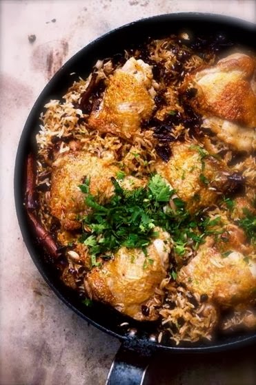 I love this dish from “Jerusalem” as featured in the NY Times a couple months ago. It “feels” very complicated to make, but really it’s not. That feeling comes mostly from having to buy a bunch of strange spices that look like something I’d find on a walk in the woods…