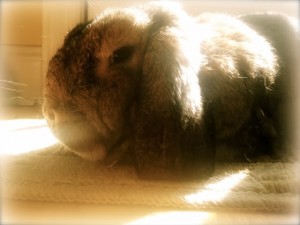 At something over 7 years old, Peeper is slowly becoming Real. Much of the hair around one eye has been loved off (thanks to chronic lop-eared wetness there) and she’s looking a little shabby all over. She has a ways to go, still, of course. She can run and dance like a youngster when given the chance.