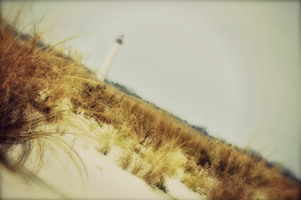 Walking the beach with the Cape May lighthouse in the distance, a flock of Snow Buntings came flying right at us. There must have been at least a hundred of them and right before it seemed that they would mow us down, they parted and we were surrounded. Their colors seem copied from fields where snow drifts hide all but the tops of the tallest weeds… large spaces of pure white touched here and there with black and gray and brown. All I heard was the rustle of wings and the ocean… it was glorious. I felt lifted up and then they disappeared back into the dunes.