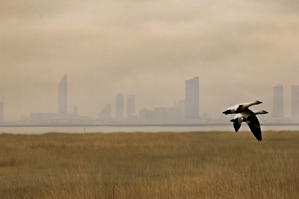 These birds, too, belong to a far away winter world. It was late afternoon and I was standing out in the cold waiting for the Snow Geese to fly across the road from one side of the refuge and over my head to the other side. It is one of the most spectacular things to witness… the gigantic flock of them, the lowering sun coloring up the white of their undersides, the noise of them. I love seeing them this way on a winter’s day too, with the hotels of Atlantic City as a backdrop. There might be a hundred different things in your head: things to do, worries and hopes, resentments and regrets. But it’s all forgotten listening to the noisy waves of geese and I felt my mind go clear, silent, here.