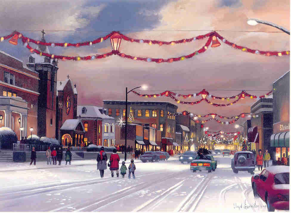 The image above is a scan of a Christmas card from a few years ago. A local artist paints beautiful scenes of the town at Christmas and turns some into cards. One day I’d like to be able to afford one of his paintings of a Christmas scene of our hometown as a gift for my husband. Something beautiful to remember all of his hard work by.