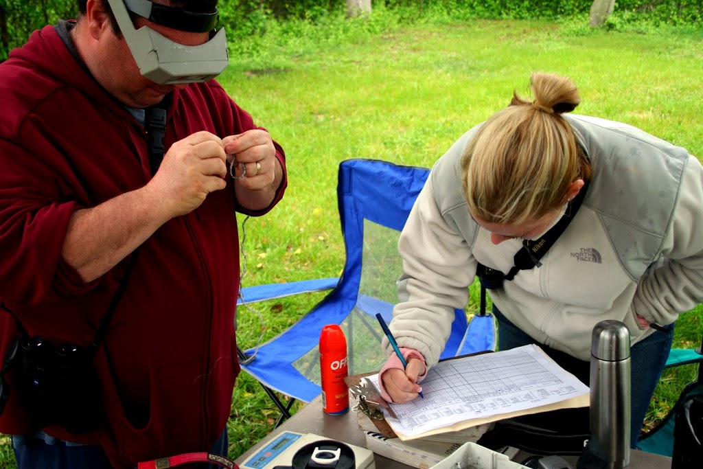 Sandy Hook Bird Observatory and CUNY-CSI are partnering in a banding study of spring/fall migrants, as well as breeding birds, at Sandy Hook. They put out a call for volunteers to help with recording data and running birds from the nets to the banders. Between schedules and poor weather, today was the first chance I had to help out and so I spent the dawn hours today with them, mostly trying to stay out of the way and taking pics.