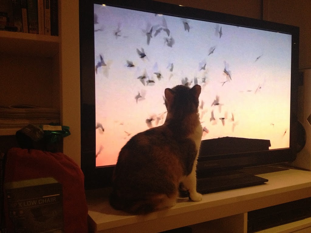 I find it odd that the dog completely ignores the telly, but as soon as a bird or mouse in on the screen, the cat comes running. 🙂